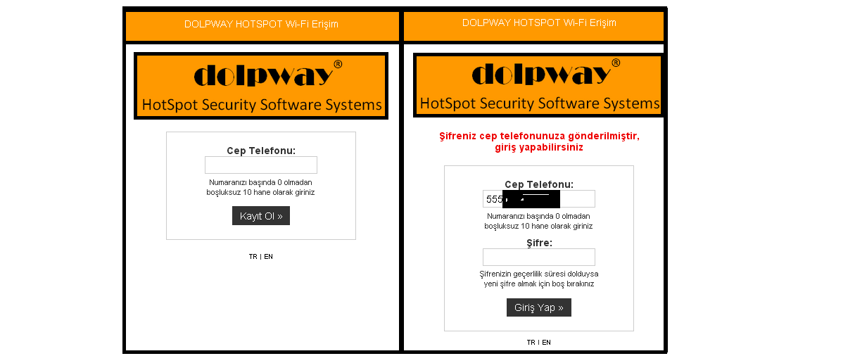 sms le şifre göndermeli İnternete GİRİŞ hotspot wifi